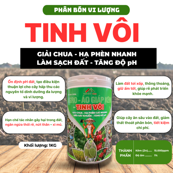 TINH VÔI - Giải pháp cải tạo đất – hạ phèn – hỗ trợ cân bằng pH nhanh chóng, giúp cây trồng phát triển bền vững.
